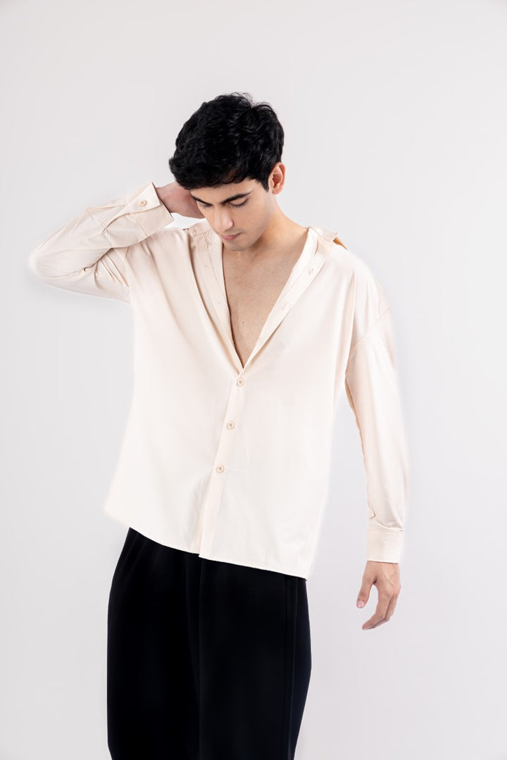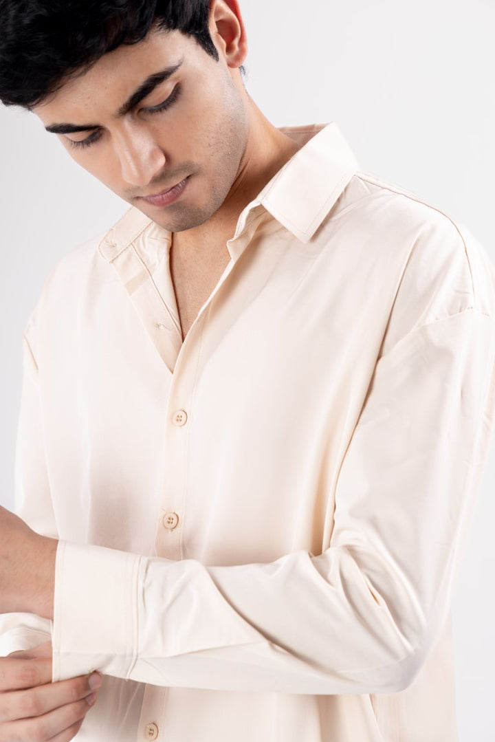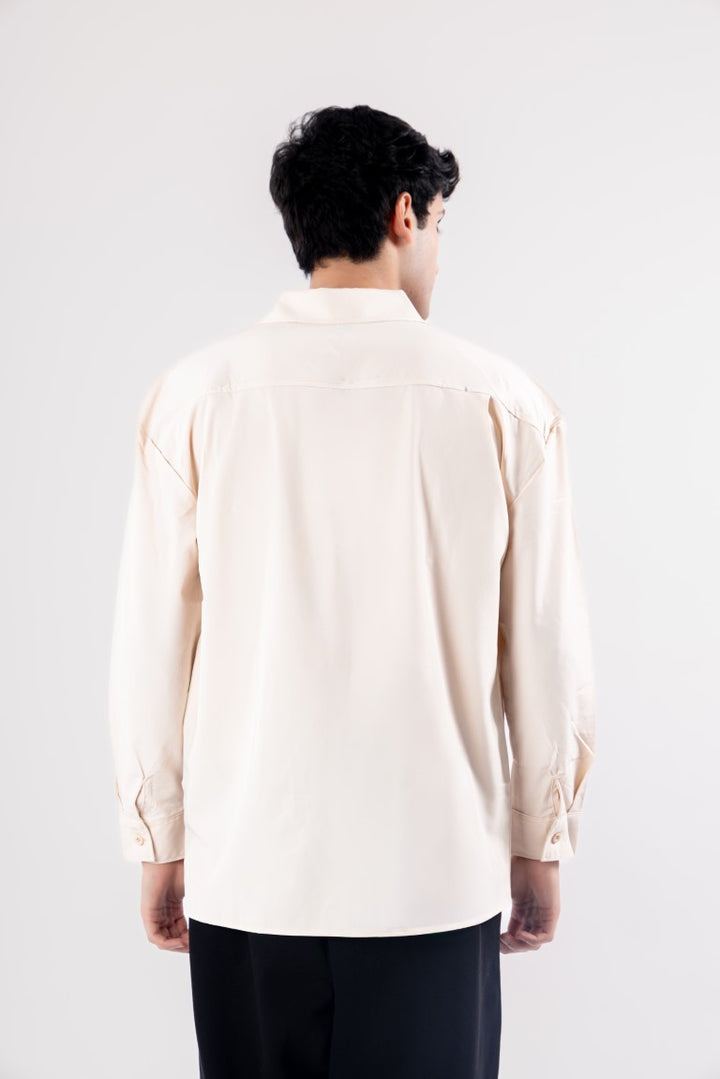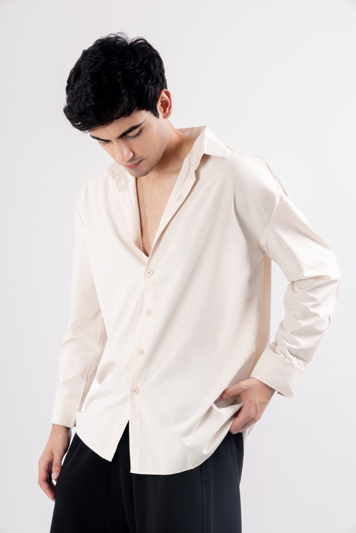 Effortlessly sleek, this Korean-style loose-fit shirt blends minimal design with all-day comfort. Crafted from wrinkle-free fabric, it drapes smoothly for a relaxed yet refined silhouette. Perfect for both smart and casual looks, its soft ivory cream tone adds a touch of understated elegance to any outfit.